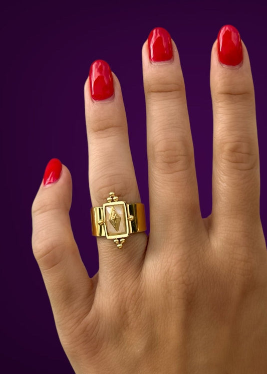 This ring collection is for the art lovers, the rule breakers, and the ones who know a great hand moment is a power move. From sculptural silhouettes to sleek finishes and stone inlays, each piece feels like a little sculpture you get to wear. Stack them, mix metals, or let one bold shape do the talking.